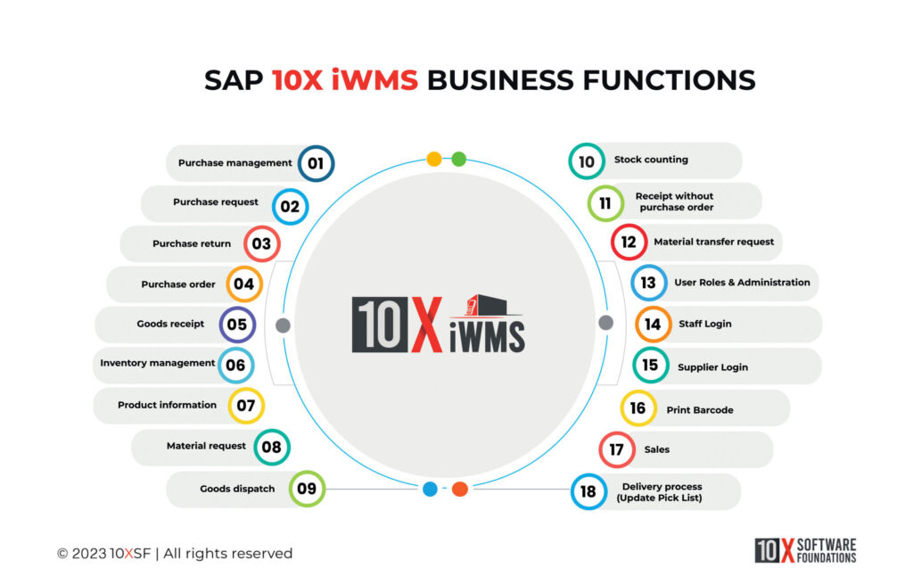 10XiWMS application provides hassle-free state-of-the-art functionalities to the users which are well integrated with SAP Business One ERP for real-time data availability and transactions. It is made available in both iOS and Android platforms and has the following modules.10XiWMS offers Purchase Management, Purchase Request, Goods Receipt, Purchase Order, Inventory Management, Product Info, Material Request, Goods Dispatch, Goods Receipt, and Stock Counting.